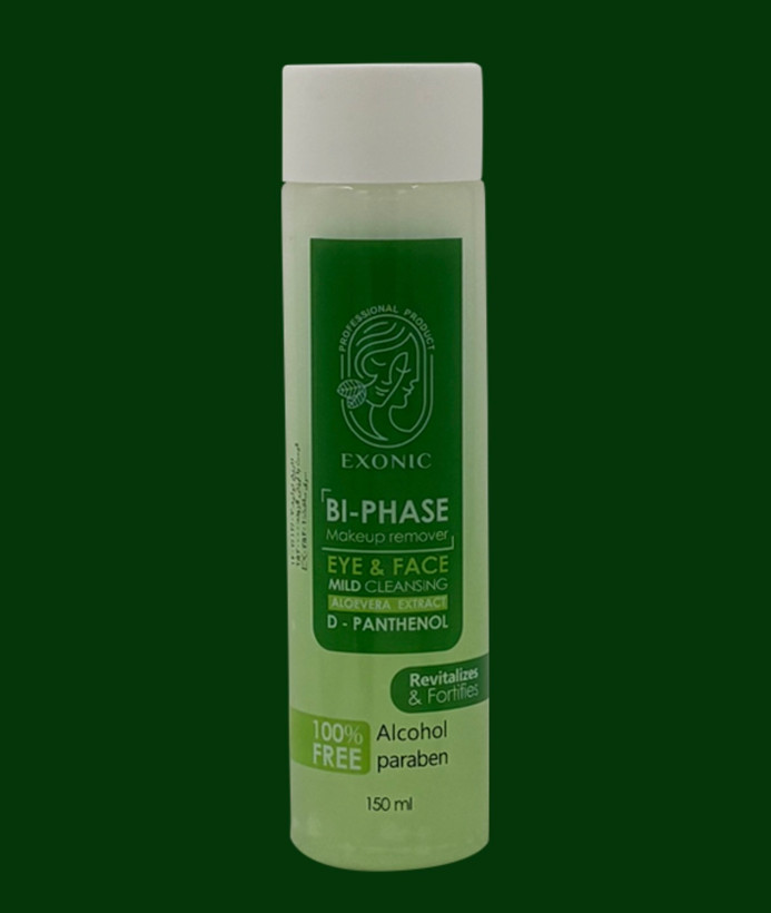 پاک کننده آرایش دو فاز اکسونیک محصولی ایده آل برای پاک کردن آرایش چشم ها و صورت می باشد که در مدت کوتاهی چربی و آلودگی را پاک کرده و آسیبی به پوست نمی رساند،دو فاز بودن محلول پاک کننده آرایش اکسونیک باعث می شود که هم محصولات آرایشی محلول در آب و هم محلول در چربی را به آسانی و در زمانی کوتاه پاک کند.